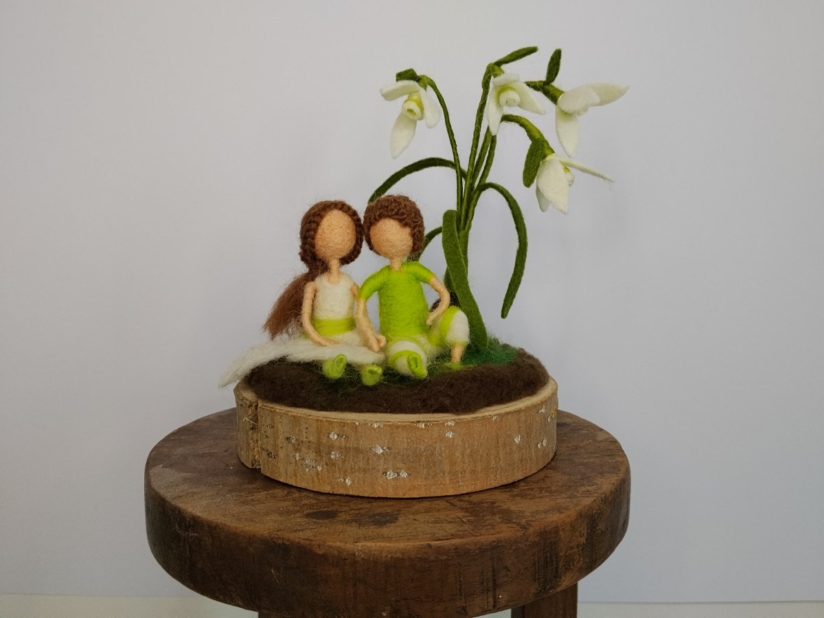C’est lors de mes huit années passées comme "jardinière d’enfants" dans une école Steiner-Waldorf que la laine s’est révélée à moi (j’aime ce terme de "jardinière". Il porte l’image d’accompagner, de faire « pousser » ces merveilleuses graines que sont les enfants). Le soir, pour offrir des cadeaux d'anniversaire aux enfants ou pour embellir la classe, j’ai commencé à tricoter, à travailler la feutrine, puis à modeler la laine cardée ou à feutrer. Petit à petit, l'envie de créer davantage a grandi. Il me manquait du temps, jusqu’au jour où j’ai pris la décision — celle qui change tout — de me lancer.
